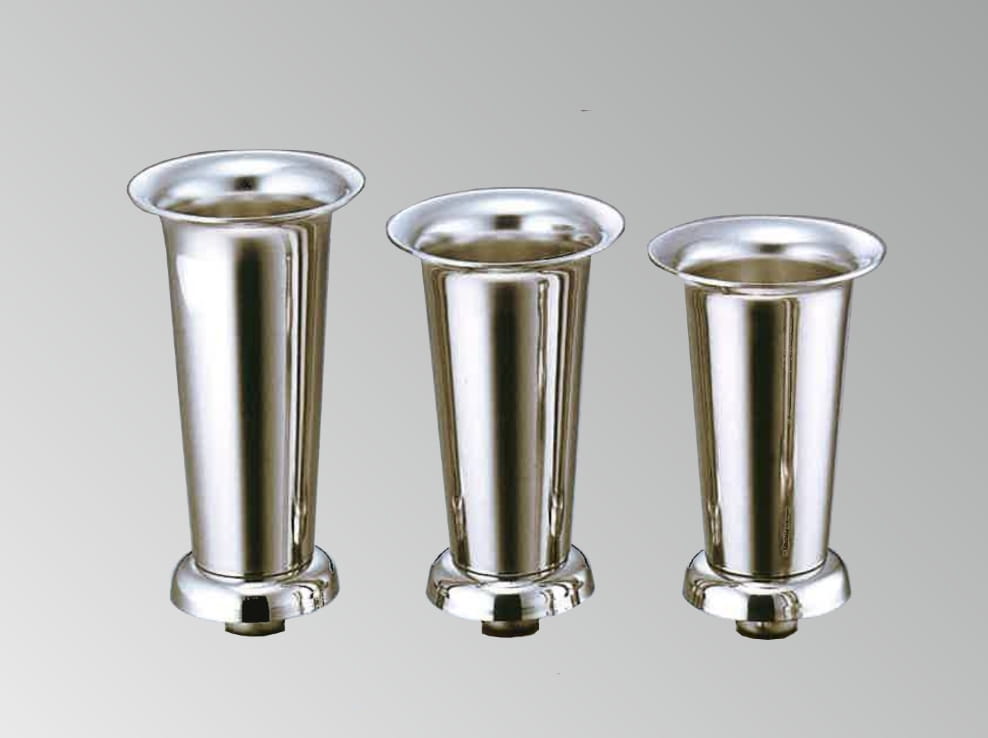 バリエーション豊かな品揃えです。ツバ付き・段ツバ付き・ツバなし、ネジ式花立や落とし込みタイプ、脱着式などお好みに合った花筒・花立をお選びいただけます。