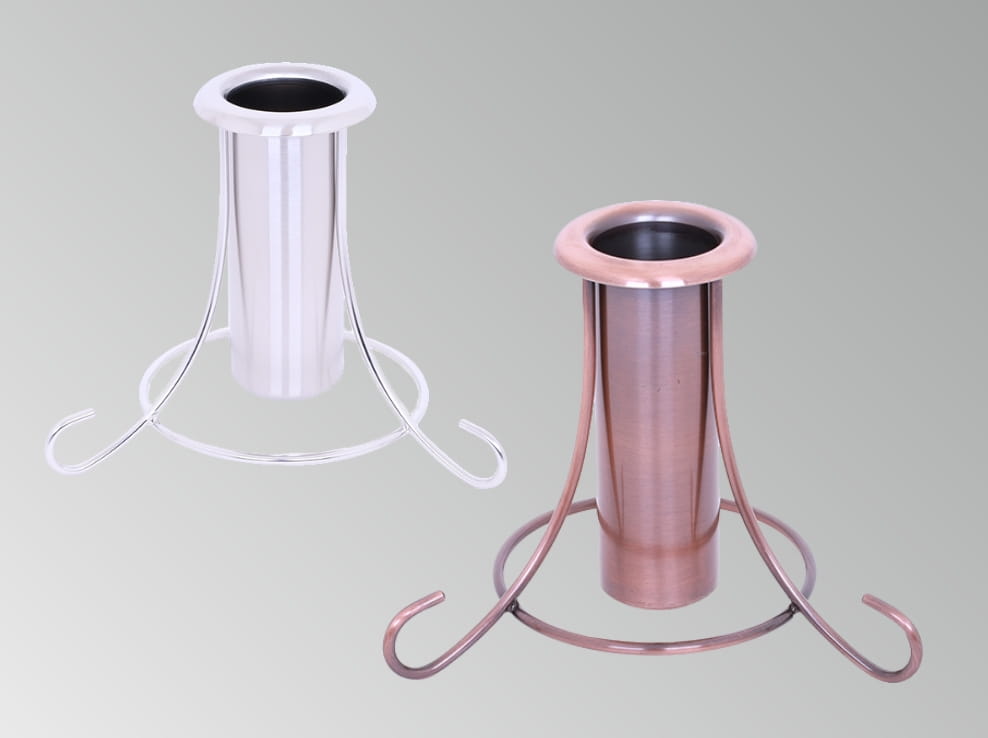 樹木葬墓地やガーデニング墓地・洋型墓石などにも馴染む、おしゃれな花立用のスタンドです。景観に合わせやすいシルバーとブロンズの2色展開です。