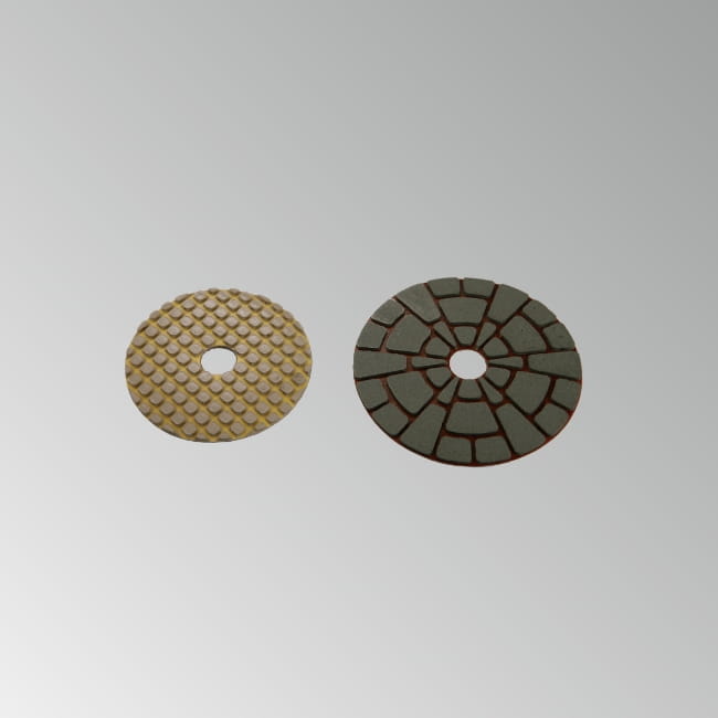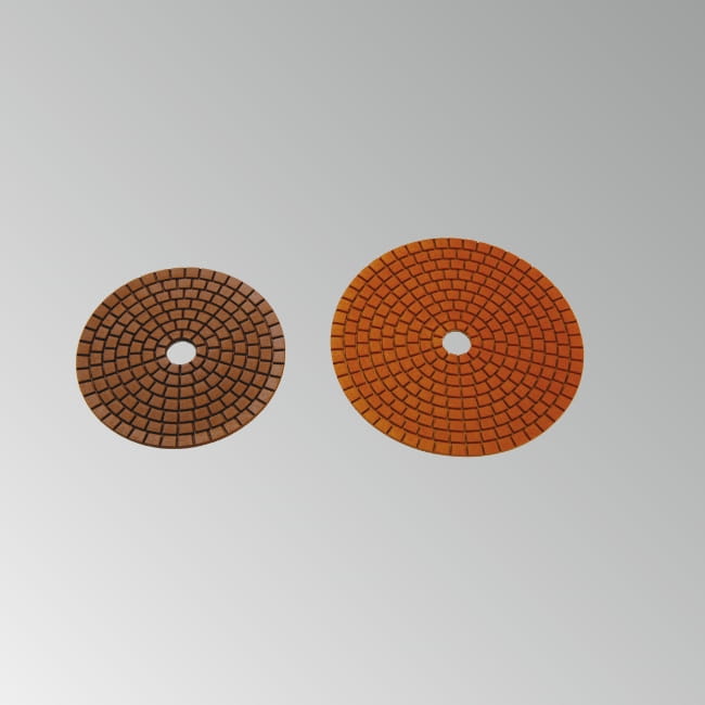 荒削りからツヤ出しまでの工程で使用する、人造大理石用の湿式パットです。ゴムパットやベークパットに貼り付けて使用します。