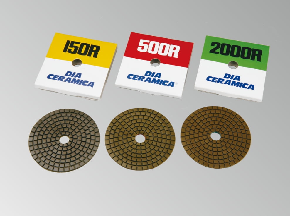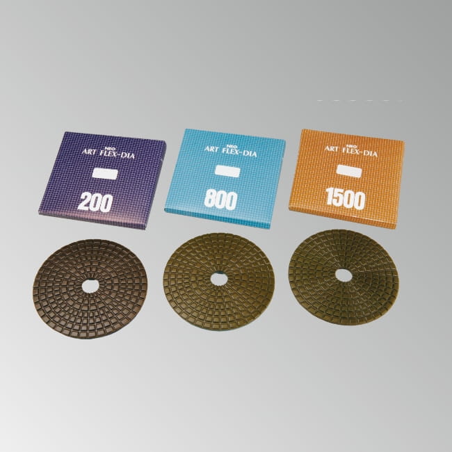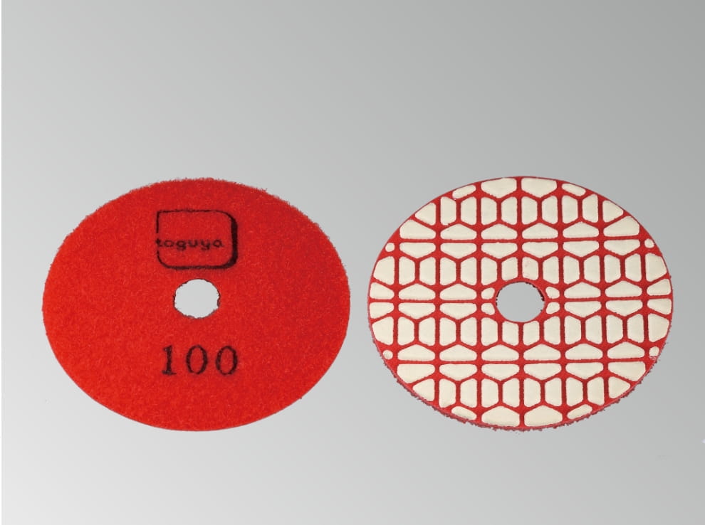御影石・大理石用で荒削りからツヤ出し工程に使用可能です。サイズはφ80・φ100。レジンダイヤ#80〜バフ#9000と細やかな美しい仕上げが叶います。