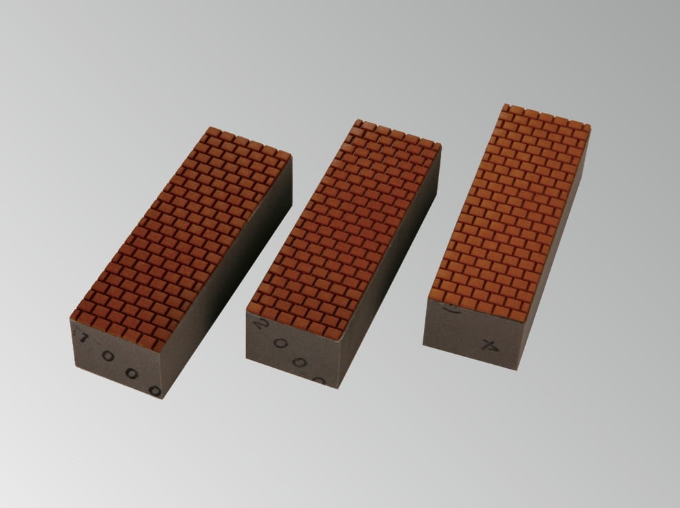 大理石用で水を適量つけて擦って使用します。サイズは120mm×40mm。粒度#500・#1000・#2000・ツヤをご用意しております。